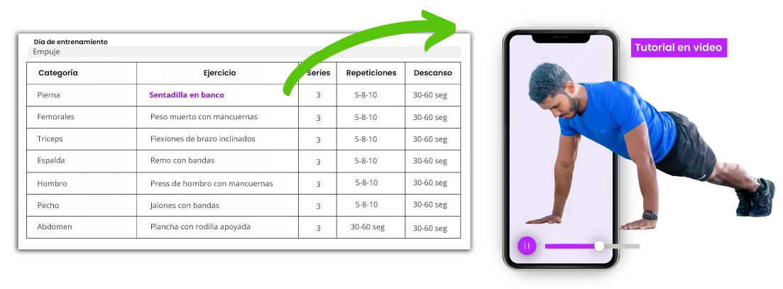 Envíanos vídeos realizando los ejercicios y el coach te enviará las observaciones y correcciones de forma personalizada.