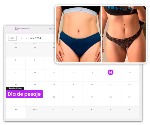 Fotografías y pesaje semanal para evaluar progresos y asegurar que avanzas correctamente.