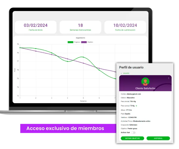 Obtendrás tu plan de alimentación y entrenamiento. Control, pesaje y planes en un solo lugar.